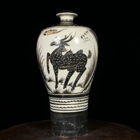 宋吉州窑瑞鹿纹梅瓶 22*11厘米