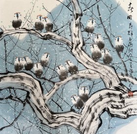 崔瑞鹿精品斗方写意花鸟国画【春曲】纯手绘未装裱(真假自鉴)