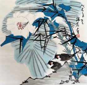 崔瑞鹿精品斗方写意花鸟国画【清氣】纯手绘软片未装裱(真假自鉴)
