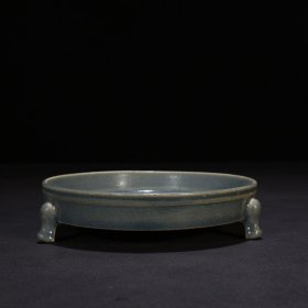 宋汝窑刻瑞鹿纹三足洗 5*17厘米
