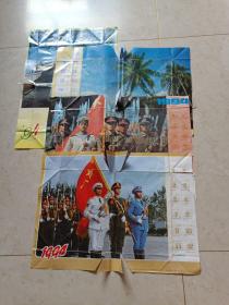 1994年年历画,包书皮(人民子弟兵,我们的队伍向前进,海南夏日,夕照瘦西湖,共四张)