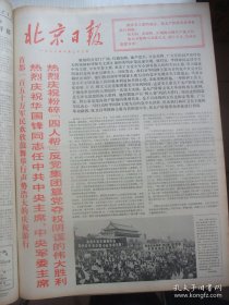 含粉碎四人帮专辑原版合订本:北京日报(1976年10月)国庆27周年活动、中共中央《关于建立毛主席纪念堂和出版毛泽东选集的决定》、潘宁杨春瑞素描画、我国成功一次地下核试验、首都150万军民集会游行庆祝华国锋任中共中央主席和粉粹四人帮、华主席巨幅标准像、各省市自治区和各总部兵种各大军区庆祝盛况、各省市自治区和各总部兵种给华主席党中央致敬电、周鹤诗、谢景臣刊头画、杜来北京琴书、于万海锣鼓快板等
