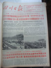 含粉碎四人帮专辑原版合订本:四川日报(1976年10月)馆藏品佳。国庆27周年活动、中共中央关于建立毛主席纪念堂和出版毛泽东选集的决定、徐匡木刻、昌炯宣传画、松潘平武地震抗震救灾双先代表会议、我国又成功进行了一次地下核试验、首都军民集会游行庆祝华国锋任中共中央主席和粉粹四人帮、四川省军民盛大庆祝集会和游行、华主席巨幅标准像、各省市自治区和各总部兵种各大军区庆祝盛况及给华主席党中央致敬电等内容