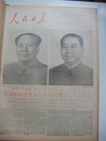 含国庆23周年专辑原版合订本:人民日报(1972年10月)毛主席巨幅标准像、国庆社论、洪源词田歌田光曲、记雪山雄鹰七林旺丹、贝时璋率中国科学家代表团出访、区焕章套色木刻画、北京工农兵医院和积水潭医院协作成功进行了同体断肢移植手术、记吉林市钢厂革委会副主任饶锡贵、记某团政委林华、红军战士甘祖昌事迹、记昆明铁路局工程六处三大队党委副书记赵连平、女领航教员吴文珠、麦国雄中国画、《红旗渠畔红烂漫》画刊等