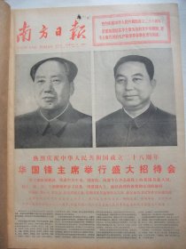 含国庆29周年专辑原版合订本:南方日报(1978年10月)毛主席和华主席巨幅标准像、国庆29周年盛大活动、国庆招待会祝酒词、国庆社论、谭日超诗、余松岩《热浪》、袁慰吾宣传画、涂宗岳宣传画、韦央对口词、叶泽权骨灰安放仪式、李炳泉骨灰安放仪式、评长篇小说《牛田洋》、柳嘉《珠江抒情》、杜埃散文、暨南大学首届开学典礼、访复办后的暨南大学、中日和平友好条约正式生效、广州市委为华嘉等平反、陈郁萍骨灰安放仪式等