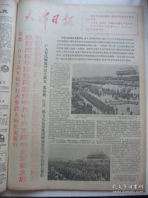 含国庆25周年专辑原版合订本:南方日报(1974年10月)馆藏品佳。毛主席巨幅标准像、国庆社论、国庆25周年盛大活动、柯原诗、秦文美油画、毛主席接见外宾、广东省文史研究馆副馆长张友仁先生逝世、黄廷杰《竹棚礼赞》、陈俊年诗、记梅田矿务局一矿革委会副主任邝保华、广东省美术展览作品选(林墉伍启中周波鸥洋邱熙坤吕泽兰张卓英蔡修齐张绍诚陈小强熊兆瑞周树桥画作)、广州部队生产建设兵团第二政委李荆山逝世等