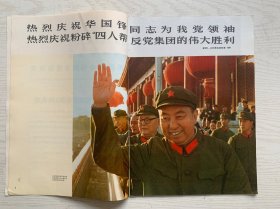 含华国锋任中共中央主席和粉碎"四人帮"集团专辑精品画报:《人民画报》(1976年第12期)。画报充满那个特殊年代的时代色彩。主要内容:毛主席华主席巨幅标准像、华主席在天安门城楼向庆祝群众挥手、毛主席纪念堂奠基仪式等。馆藏品佳、完整无缺无划、品佳是一大卖点