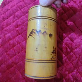 山水烙画茶叶罐