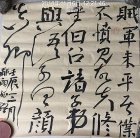 董文旭先生精品 保真出售 备注:有折痕。 董文旭(1961~ )字若愚。山东苍山人。1989年考入北京理工大学社会科学系中国书法艺术专业。现为中国书法协会会员、刻字委员会委员,山东省书法家协会理事,泰安市书法家协会第二届副主席兼秘书长,中国现代书画摄影艺术家协会会员,中国硬笔书法家协会会员,山东美术家协会会员,山东画院高级画师,泰山书画院高级书画师。