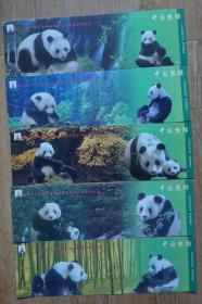 60分牡丹大熊猫邮资片2联张5枚全(明信片长度33厘米)带封套(1999年为迎接第22届万国邮政联盟大会在北京召开,北京市邮政管理局发行该套纪念明信片1万套)