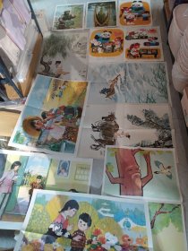 老教学挂图:公园里的花、啄木鸟医生、他为什么迟到了、所见、送水、江上渔者、小儿垂钓、学剪纸、赵州桥、邮递员等,品种如图所示11张合售,好品A102