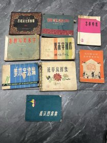 老美术字图案集一批,共9本,567十年代老书,内容包括美术字、花草纹样、剪纸、黑板报等,适合怀旧收藏或美术爱好者参考。书本有年代感,边角有磨损。