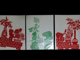 中国的民间剪纸艺术(剪纸、刻纸、窗花等)系列,中国民间剪纸,花瓶,四张。