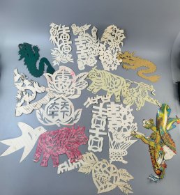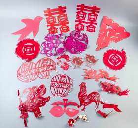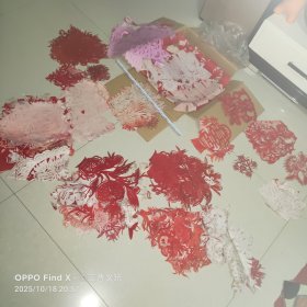 老剪纸一批,纯手工制作,图案有喜字、花卉、各种图案等,红色都有,适合收藏或婚庆装饰。尺寸不一,价格不一,最大约30厘米,部分有岁月痕迹,整体保存还可以,具体品相看图。