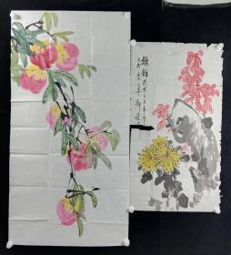 师从娄师白先生的著名画家、齐派艺术传人 郑宏涛 2002年作 国画作品《寿桃、秋韵》二幅一组(纸本软片,画心约8.5平尺+4.8平尺)HXTX256318