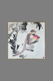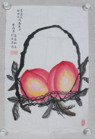 著名书法家王学仲弟子 刘 宝 昌 题词、书画家 房学如 绘 1994年合作 国画作品《寿桃图》一幅(纸本软片,画心约2.8平尺,钤印:房学茹印、刘宝昌)HXTX228931