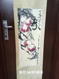 海淘 日本回流:日本幕末明治时期著名绘画大师 田能村直入 1886年作 水墨画作品《寿桃图》一件(纸本软片,画心约0.4平尺)HXTX325445