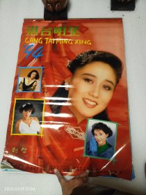 港台明星原版挂历.曾华倩郑裕玲钟楚红王祖贤刘嘉玲林颖娴邓萃雯李嘉欣黎美娴李美凤陈雅伦龚慈恩.1991年.印刷精美.4开12张全.挂历本身板新.就是日历处水渍见图.