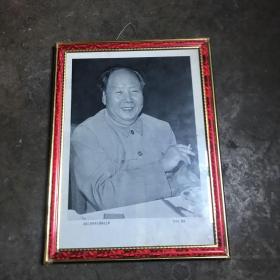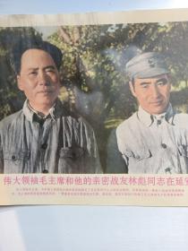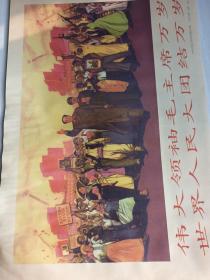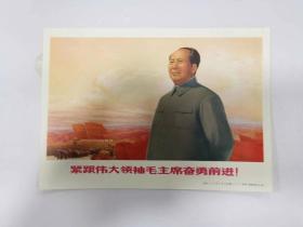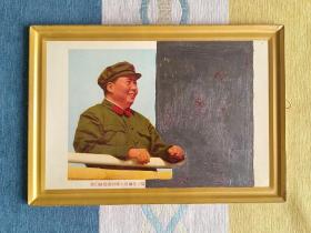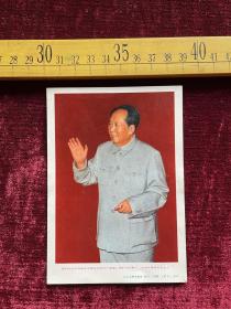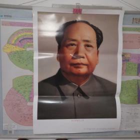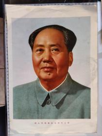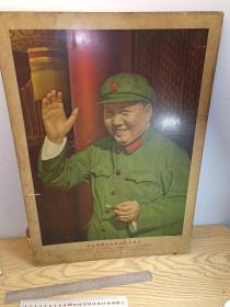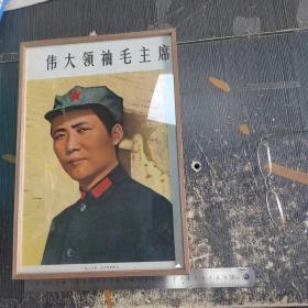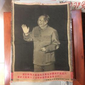 大型毛主席像山河人物,背文敬祝毛主席万寿无疆,伟大领袖毛主席巨幅画作落成纪念,1968,10,1,中国人民解放军湖北省公安机关军管会新生玻璃厂军管小组敬制。〈此章稀见,)