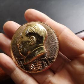 毛主席像章(贵阳地区敬塑伟大领袖毛主席像落成纪念1968.12.26) 上部旗帜上有毛主席着军服左侧像.下部有光芒万丈红太阳和毛主席诗词.下端有“春雷广场”四字