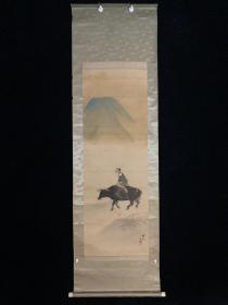 【手绘】日本回流老字画5276绢本栗本光陽童子骑牛图茶道收藏书房