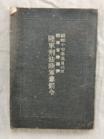 1942年(昭和17年)日本陆军省 军事教本《陆军刑法、陆军惩罚令》一册全!叛乱罪/ 擅权罪/ 辱职罪/ 抗命罪/ 暴行胁迫罪/ 侮辱罪/ 逃亡罪/ 军用物损坏罪/ 掠夺罪/ 违令罪等及惩罚细则内容。尺寸:长10.5厘米×宽7.5厘米×厚0.5厘米。