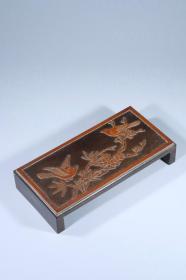 清代 红木镶竹黄喜上眉梢墨床