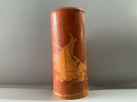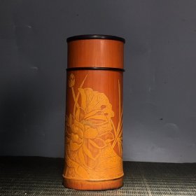 旧藏回流竹黄手工雕刻茶叶筒,