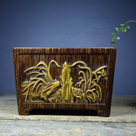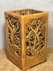 民国竹黄四君子“梅兰竹菊”笔筒