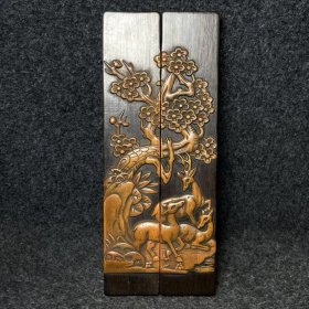 竹黄雕松鹿 镇尺 一对 长30公分