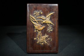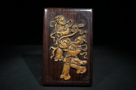 旧藏檀木镶金丝竹竹黄砚台盒