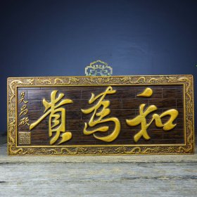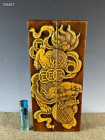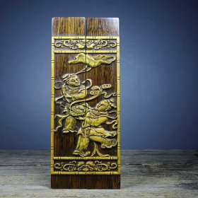 旧藏檀木镶嵌竹黄挂屏 重量:1770g