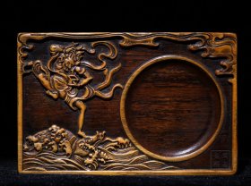 旧藏竹黄雕刻挂匾龙腾四海0