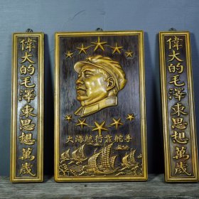 旧藏檀木镶嵌竹黄 毛主席 挂屏