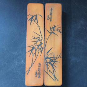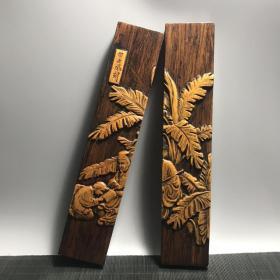 珍藏竹根雕刻贴竹黄镇尺一对