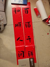 手写对联 平安满门添百福、康乐二字值千金尺寸175*32cm(可以代写红喜对联)