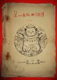 《苏州民间曲调选》(一),苏州市文化局、苏州市文联、苏州市群众艺术馆 编印。1959年3月第1版第1次印刷。老式铁笔蜡纸手工刻版彩色色油墨单面油印共,16开本,共70页。共收录苏州民间曲调48首。