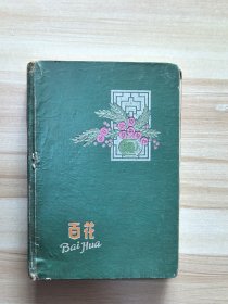 老日记本《百花》精装 内页彩色插图12幅 品如图,有大量医学笔记,附油印《小儿液体疗法》