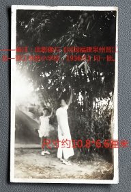 民国老照片:民国福建厦门—中山公园,美女,1936年7月,有背题。——备注:此影像与《民国福建泉州晋江县—晋江卓然小学校,1936年》同一批。【桐阴委羽系列】