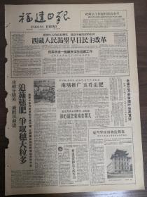 《福建日报》:【云霄厦门糖厂产糖率并列全省第一名;谢国华抢救溺水祖孙三人;邵武茶叶联合公司成立;福州早期华侨及其史迹;我国人造血液研究成功;】~(版面齐全,放心购买)。