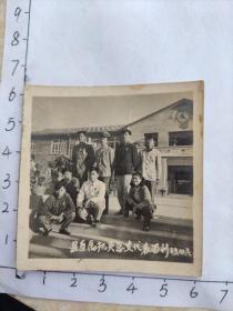 一个曾经当过中国人民解放军警卫员的福建军人相册:1959年邵武县(古田县?)县直属机关总支代表开会后在县委会外合影照(有代表证,建筑物上大五角星,有军人代表)587