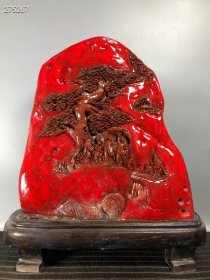 镇店!美丽风景! 寿山石老性红芙蓉石【松下访友】大摆件 巧色雕刻 老料老工艺 重约4斤 旧时皇宫所用 有幸收得一方 藏石多年 只此一件 美不胜收 美石无言赞!欢迎石友品鉴!