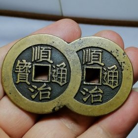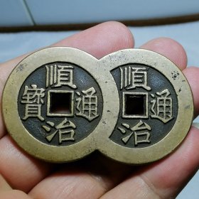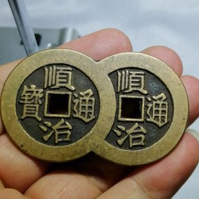 9913.顺治通宝背天下太平宫钱雕母连体钱【【赔钱处理】
