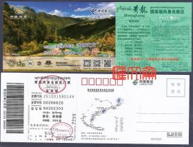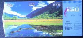 中国邮政明信片格式-门票【黄龙风景名胜区】国家级风景名胜区导游图,导览图,带发票联票面完整,黄龙旺季正常票,条码。