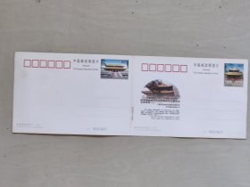 孔庙-大成殿、杏坛普通邮资明信片门票-孔庙双联对折明信片,详见图片及描述