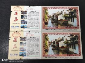 江苏门票 中国第一水乡——周庄 连号票 (2枚合售) 票价100元 邮资明信片 保险证 附副券 中英文对照