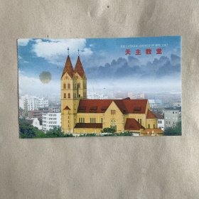 青岛天主教堂邮资门票明信片