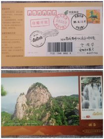 河南木礼岭景区门票明信片实寄片