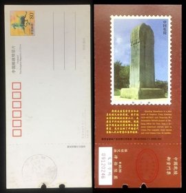 门票式明信片 陕西乾陵 无字碑 邮资门票 两枚不同版本