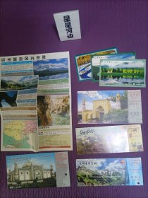 【门票】新疆门票四枚(香妃墓、艾提尕清真寺、高台民居、克州冰川公园)+明信片三枚(带邮戳)+导览图一张(克州旅游风光览胜)